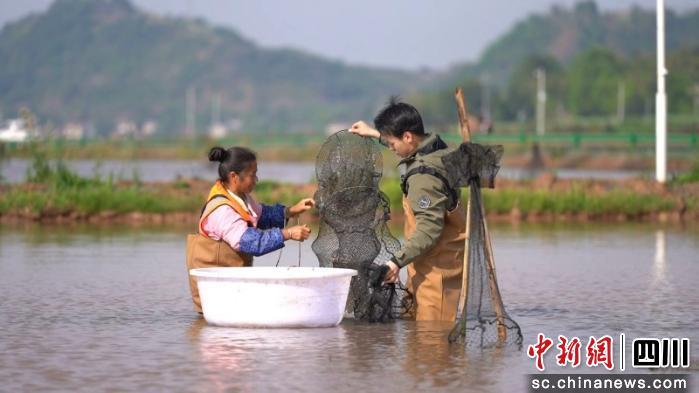 在四川众诚祥霖农业科技有限公司的稻虾养殖基地里,工人们穿梭在连片生态虾田,熟练收起挂满鲜虾的地笼。壳红肚白、肉质饱满的早虾鲜活出水,在筐中不停蹦跳,满是生机与活力。随后,采收工人在现场快速分拣装筐、称重登记。