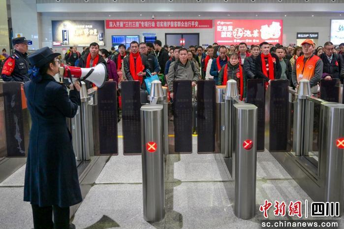中新网四川新闻3月2日电 (刘忠俊 简艳)3月2日,来自四川省成都市、眉山市、乐山市、宜宾市的760余名返岗务工人员,搭乘D1809次免费专列奔赴广东,开启新一年的务工、返岗复工之路。为减少务工人员中转奔波,专列采用“沿线接站”模式,方便务工人员就近上车,实现“家门口”到“厂门口”的便捷衔接。