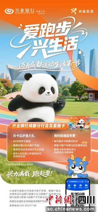 中新网四川新闻10月14日电 2024年,兴业银行携手中国银联、成都大熊猫繁育研究基地联名先后重磅推出“百变熊猫基地和花信用卡/借记卡”,凭借独特的“花花”IP设计收获了来自全国“护花使者”们的喜爱和追捧,“花花卡”贴近民生消费的权益和服务也获得了广泛的市场认可与用户好评。近日,为积极响应居民群众日益增长的健康生活需求,兴业银行成都分行紧跟总行“爱跑卡”运动健康布局,打造健康运动消费生态闭环,联合“和花IP”及特步,全新推出“花花爱跑卡”,让可爱“熊猫果赖”引领健康生活方式。