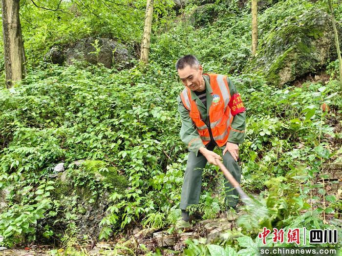 中新网四川新闻10月20日电 (罗天琪 李柔)68岁的陈发贵,身着橙红色马甲,肩扛长柄弯刀、手持喇叭,每日清晨6点骑着摩托车驶向太平村山林——这样的巡林路,他已走了25年。2025年8月,这位九龙镇巡林员获评德阳“最美巡林人”,而他守护的4000多亩山林,在他的脚步丈量下,始终郁郁葱葱。