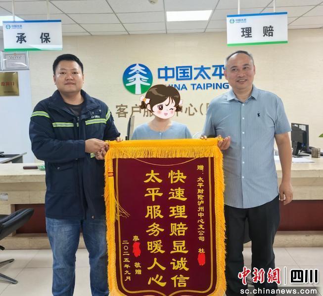 中新网四川新闻10月26日电 近日,一面写有“快速理赔显诚信,太平服务暖人心”的鲜红锦旗,承载着客户的赞誉与信任,专程送至太平财险泸州中心支公司。这不仅是对一次暖心理赔的诚挚感谢,更是对太平财险泸州中支高效专业服务的生动见证。