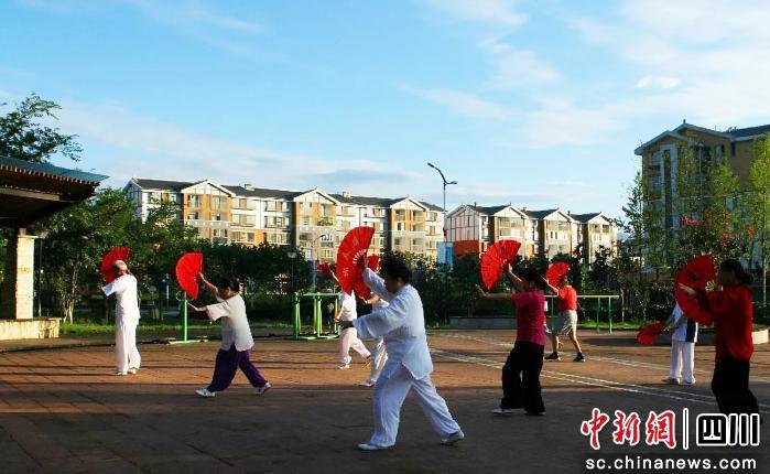 每天清晨,北川新生广场上,老人们伴着悠扬的羌族乐曲旋律跳起“沙朗健身操”,用舞蹈表达对美好生活的热爱。“我年轻时就喜欢跳舞,退休后和老朋友们一起练习,现在已经能完整跳出好几支舞蹈了,每次跳完都觉得全身舒坦,心情也特别好。”刚跳完舞的禹龙社区王静老人高兴地说。