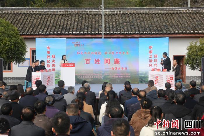 中新网四川新闻10月31日电 (冉金鹭)“李书记,我们桃树二组每年春季都缺水,有时候人吃的水都供不上,你们村上要想啥办法不?”10月30日下午,由广元市朝天区纪委监委主办、临溪乡党委政府承办的“百姓问廉”活动现场,群众代表李万荣率先举手,话筒刚递到手中,他便急切地抛出了村民们最关心的用水难题。台下掌声与附和声此起彼伏,一场“辣味”十足又饱含温度的“百姓问廉”活动就此拉开帷幕。