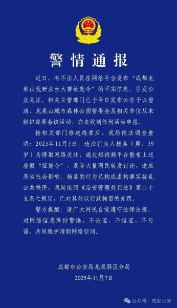 11月7日晚,成都市公安局龙泉驿区分局发布警情通报: