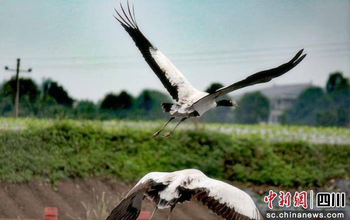 中新网四川新闻11月17日电(吴平华 徐健军 曾钰茹)近日,宜宾叙州区泥溪镇出现了一群“新朋友”——黑颈鹤。黑颈鹤是国家一级保护动物,被誉为“鸟类大熊猫”,首次现身于泥溪镇境内的嘉岷堤沿岸,这一罕见景象为初冬增添了灵动生机。