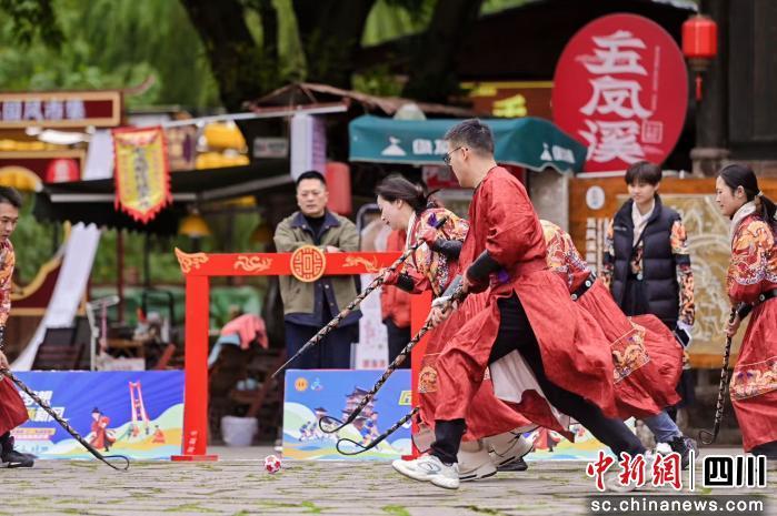 当日上午,《我们是自豪的劳动者》歌声落下,一场精心编排的“千年传承·汉服步打球展演”惊艳全场。手持蜀锦装饰月杖的职工,以传统礼仪重现盛唐时期的步打球仪式,让传统韵味与现代体育交相辉映。