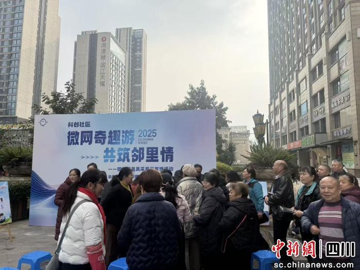 中新网四川新闻12月26日电 成都高新区桂溪街道科创社区内热闹非凡,一场以“学习基础强技能·服务群众零距离”为主题的微网格宣传活动在此举行。此次活动吸引了众多社区居民热情参与,进一步增进了居民对微网格员工作的了解与支持,为社区治理注入了新的活力。