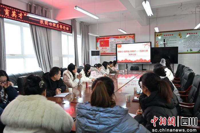 中新网四川新闻12月26日电 (冉金鹭)26日,由广元市朝天区曾家镇三支一扶干部王胤丰和志愿者范瑞杰共同倡议,朝天区之江中学、广元市瑞霖绿化有限责任公司携手助力的“暖童心?提师能?育英才”校园心理关怀行动走进曾家镇第一小学,不仅给老师们带来了专业的心理赋能培训,也为孩子们送上了温暖慰藉,在“家校社”协同育人的画卷上添上了温馨的一笔。