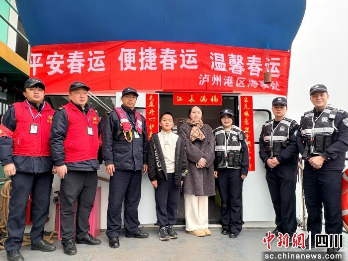 中新网四川新闻2月4日电 (陶一欣 廖茂吉)2月2日,2026年春运第一天,长航公安局泸州分局民警早早来到长江边的弥陀渡口,登上熟悉的“弥陀号”渡船,将新春祝福与平安守护传递给返乡群众,让年味与暖意一同伴随群众踏上团圆归途。