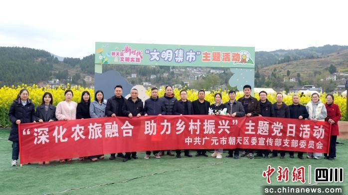 中新网四川新闻3月20日电 (李桂华 冉金鹭)春风拂沃野,山川焕新颜。3月19日,云雾山镇月台?花溪谷繁花似锦,羊木镇千亩油菜花海金浪翻滚,水草坪乡村旅游点青山叠翠,广元市朝天区委宣传部党支部将主题党课搬进田园乡野,以“深化农旅融合助力乡村振兴”为抓手,把组织生活开在产业一线、把调研课堂设在田间地头,在实地走访中寻发展路径,在交流研讨中聚宣传合力,让党旗在乡村振兴一线高高飘扬。