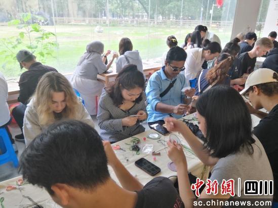 中国结制作环节同样热闹。老师拿着彩绳,一步步演示缠绕、穿插的手法,还向大家介绍:“中国结象征着吉祥如意、团结和睦,每一个结都藏着美好的祝福。”外籍友人们跟着老师的步骤,手指在彩绳间穿梭,从最初的手忙脚乱,到后来的渐入佳境——当一个个色彩鲜艳的中国结在手中成型,大家纷纷将其挂在包上,“以后看到这个中国结,就会想起今天的快乐,想起它代表的美好寓意。”(完)