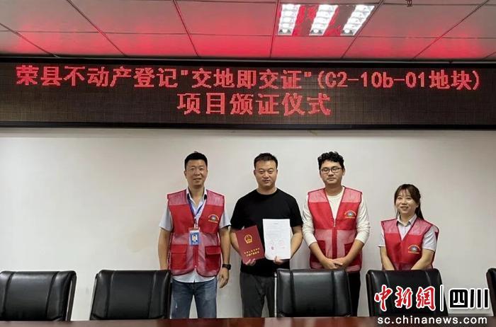 中新网四川新闻10月10日电 (刘刚 徐振宇 沈佳敏)近日,自贡市荣县自然资源和规划局不动产登记中心“自然红心服务队”,在C2-10b-01地块交地现场为四川省某中药材加工有限公司同步办结了不动产登记发证,成功实现“交地即交证”。