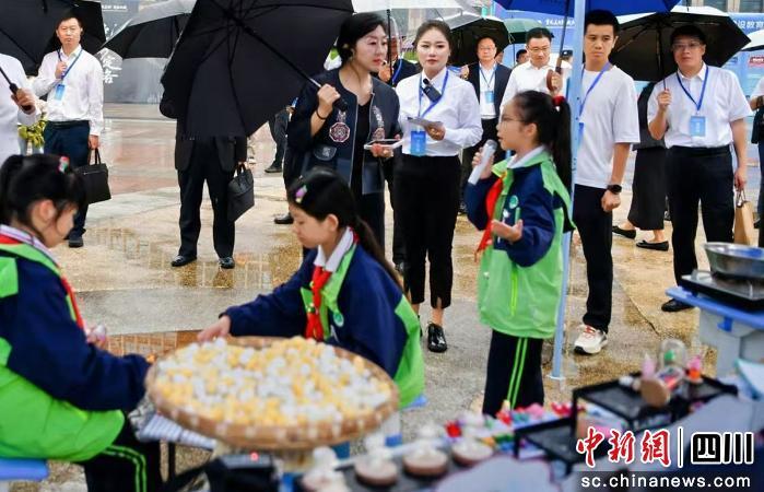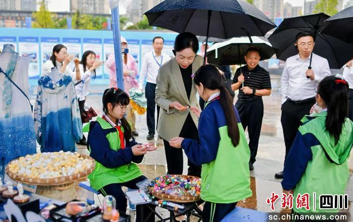据悉,在成果展现场,荣县树人小学校围绕“蚕”这一特色载体搭建展示场景。一边是师生现场演示蚕丝提取、蚕丝扇手工制作的完整流程,以“沉浸式”体验呈现学校实践教育与传统文化融合的教学特色;另一边则通过展板、手册等形式,系统陈列学校参与成渝地区教育协同发展的过程性材料,涵盖区域内学校开展工艺教学交流研讨的影像资料、学生实践活动记录等。(刘刚 陈悦/文 荣县融媒 供图)