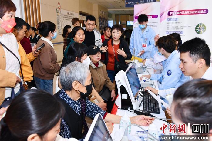 中新网四川新闻10月21日电 (刘忠俊 张小斐)10月20日,为提升民众尤其是中老年群体对骨质疏松症的认知与防治意识,都江堰市人民医院举办“骨质疏松日”系列义诊与健康宣传活动,吸引了不少市民参与。
