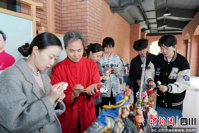 非遗体验环节,特邀“百城百艺·新繁棕编”省级非遗代表性传承人陈金蓉与“成都面人”市级非遗代表性传承人张龙贵进行现场演示与教学互动,让师生在亲手实践中感受非遗技艺的魅力,体悟传统文化的生活意趣。