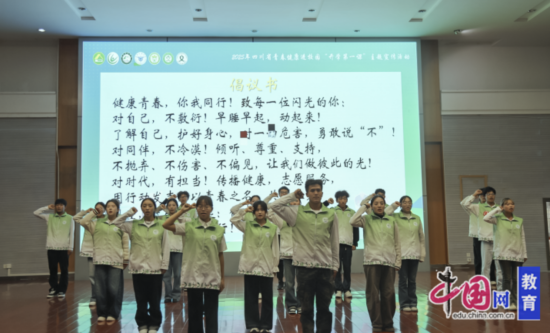 在学生倡议环节,青年学子发出青春宣言,呼吁全体同学:“做健康生活的践行者,坚持规律作息、科学锻炼;做温暖同伴的支持者,彼此倾听、相互尊重;做时代责任的担当者,传播健康理念、投身志愿服务。”以“健康青春,由我定义;闪闪发光,你我同行”的铿锵誓言,展现了新时代青年的责任担当,赢得了全场热烈响应。