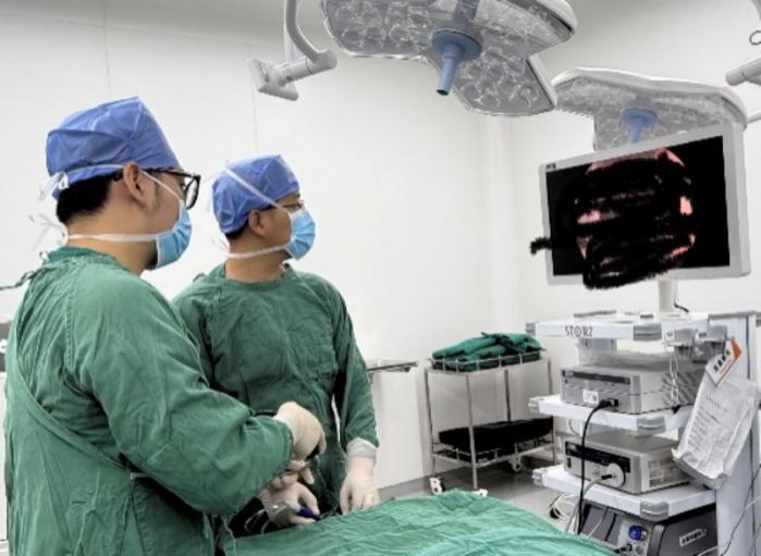 耳鼻咽喉头颈外科熊垒主治医师充分告知患者及家属病情及治疗方案后安排行内镜辅助下经口保留扁桃体左侧茎突截短术。传统方式行经口茎突截短术,需先切除扁桃体,在扁桃体隐窝中向上游离并截短茎突,此次我科行保留扁桃体茎突节段术,保留扁桃体作为一个免疫器官不被切除,同时很好地完成茎突截断手术。