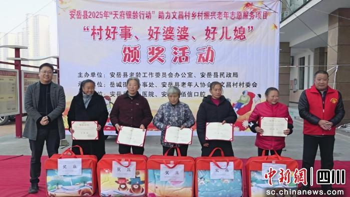 中新网四川新闻12月3日电(吴平华 潘政吉)近日,在资阳市安岳县岳城街道文昌村的党群服务中心广场上,一场别开生面的“村好事、好婆婆、好儿媳”颁奖活动让这个小村庄格外温暖。