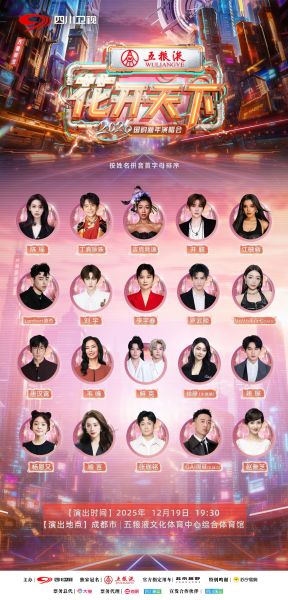 演出阵容汇聚了李宇春、GAI周延、刘宇、吉克隽逸、喻言、罗云熙、丁真珍珠、韦唯、唐汉霄等20组全能艺人。值得一提的是,李宇春作为从四川走向全国的优秀音乐人,此次回到家乡舞台迎接新年,延续了其与“花开天下”品牌的美好约定,为演出增添了特别的仪式感。丁真珍珠也再度受邀登台,以其纯净自然的风格与国韵主题碰撞出新的火花。众多艺术家将分别在七大国漫IP单元中献上精彩表演,通过创新编排,展现国韵艺术的多元魅力。