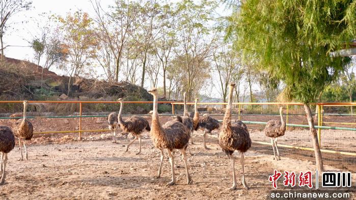 园区内的养殖区同样热闹非凡,成群的鸵鸟在果园改造的场地里欢快奔跑。在盘活林地的同时,园区还建起了全县首个规模化鸵鸟养殖基地,集研学旅为一体,形成了立体种养的新格局。预计养殖鸵鸟300余只,后期还将探索群众代养模式养殖,发展壮大成为镇域特色产业,带动群众增收致富。