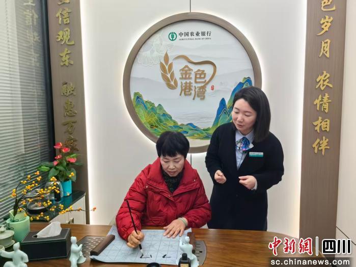中新网四川新闻12月18日电 17日下午3时,冬日暖阳,天气大好。周婆婆睡好午觉后就来到自家附近的农业银行成都高新区观东二街支行网点,支行行长谢佳热情地接待了她。周婆婆这次不是来办理业务,径直走进该支行特别开设的“金色港湾”客户活动室,神清气爽地练起来书法。