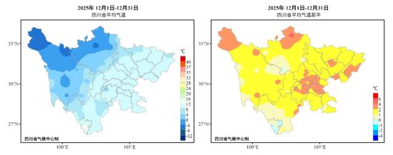 气象监测显示,2025年12月,四川全省平均气温7.7℃,较常年同期偏高1.6℃,位列历史同期第1高位。其中,盆地大部与常年同期相比偏高1.0~2.2℃。