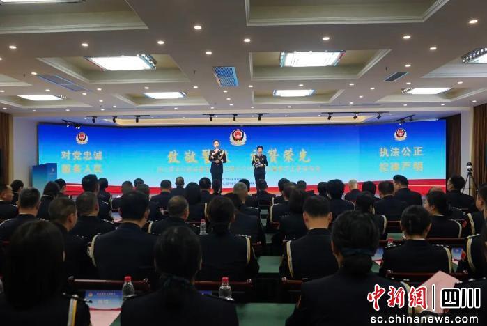 中新网四川新闻1月10日电 1月9日,四川司法行政戒毒系统举办庆祝第六个中国人民警察节“致敬警徽·礼赞荣光”主题报告会。司法厅党委委员,省戒毒管理局党委书记、局长潘奇峰,司法厅党委委员、政治部(警务部)主任、机关党委书记彭华出席报告会并讲话,省戒毒管理局党委副书记、政委刘一兵出席报告会。
