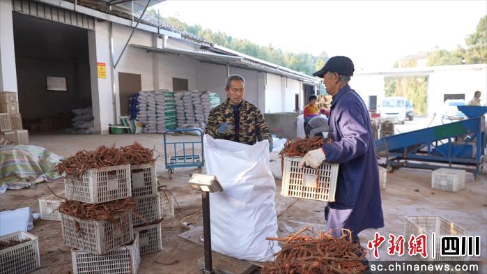 中新网四川新闻1月15日电 (胡莎莎 宋叶茱 周泓帆)当下,绵阳市梓潼县丹参迎来收获季,当地药农采用“机械+人工”的采收模式,紧锣密鼓地开展作业,田间地头处处洋溢着丰收的喜悦。