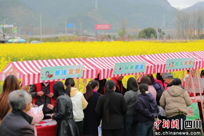 中新网四川新闻3月20日电 (李全民)3月19日上午,广元市朝天区羊木镇的千亩油菜花田里,一场别开生面的“文明集市”热闹开张。金黄的花海间,知客宣讲、爱心义剪、义诊服务、学生义卖等十多个志愿服务点位吸引了众多村民和游客驻足参与。