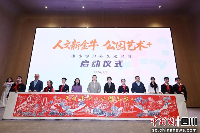 中新网四川新闻3月20日电 (尧欣雨)20日,由成都市金牛区教育局主办,金牛区教育科学研究院、成都市石笋街小学校一品天下分校承办的2026年首届“人文新金牛·公园艺术+”中小学户外艺术展演启动仪式在成都市天府艺术公园顺利举行。本次活动以“城市资源赋能教育”为笔,以“公园城市人文底色”为卷,绘就教育与城市双向奔赴、美育与生活交相辉映的动人画卷。