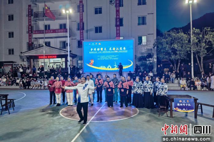 开赛前,当地村民身着朴素装扮,手捧自家种养的农特产品结队来到活动现场,有的怀抱鲜活健壮的大公鸡,有的胸前挂着一串串风干羊肚菌,有的用竹箩筐装满新茶,还有的提着升子盛满土鸡蛋,用最真实、最乡土的方式展示推介家乡好物。随后,巴山民歌展演为现场观众呈现了非遗民俗与乡村篮球的文体融合盛会。
