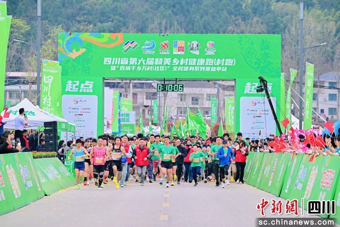 中新网四川新闻3月21日电 (彭紫薇)3月21日上午8时,随着发令枪响,四川省第六届和美乡村健康跑(村跑)暨“百城千乡万村(社区)”全民健身系列赛盐亭站在绵阳市盐亭县中华龙凤谷游客中心鸣枪起跑,来自各地的2000多名参赛选手齐聚嫘祖故里,在春日暖阳中踏上乡野赛道,用脚步丈量乡村美景,感受乡村振兴的勃勃生机。