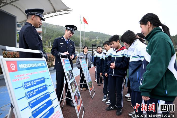 中新网四川新闻3月22日电 (罗也婷 闫临风)近日,在剑门关天立学校的操场上,掌声与笑声此起彼伏。两名青年民警张辰诚、周程园一捧一逗、配合默契,一段自编自演的相声,拉开了法制安全宣传活动的序幕。台上民警语气诙谐、神态生动,学生们目不转睛地盯着舞台,时不时被逗得前仰后合,原本严肃的安全宣传,变成了一场充满欢声笑语的“沉浸式课堂”。