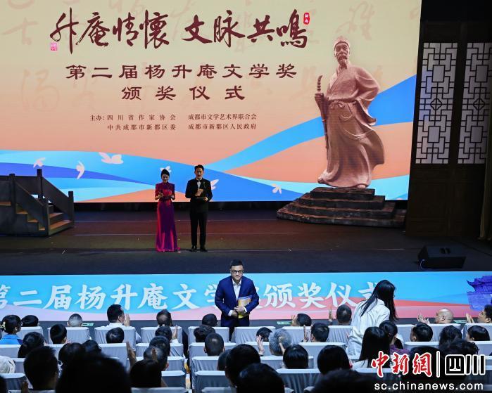 中新网四川新闻10月13日电 (汤雁)13日,第二届杨升庵文学奖颁奖典礼在成都市新都区天府家风馆隆重举行。本次盛会由四川省作家协会、成都市文学艺术界联合会、中共成都市新都区委、新都区人民政府联合主办。现场汇聚了来自全国各地的作家、文化界嘉宾,以及升庵文化城市联盟成员代表,共同见证9部主奖类作品与10部学生写作奖作品的揭晓。