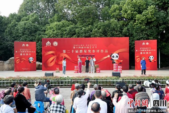 中新网四川新闻10月15日电 (唐倩 肖茹月)10月15日,第十四届中国艺术节·第二十届群星奖戏剧参评作品惠民演出在四川省遂宁市安居区、乐山市夹江县、眉山市永丰村及资阳市三贤文化公园四地同步上演。四场演出汇集了来自全国各地的群众文艺作品,通过小品、戏曲、情景剧、舞蹈等多种形式,深入剧场、田间与广场,将高质量文化盛宴直接送至百姓身边,生动诠释了“艺术的盛会、人民的节日”的办节宗旨,展现了新时代群众文艺创作的蓬勃生机。
