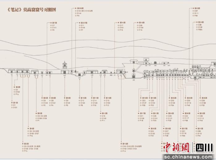 经过长期的深入研究后,张凯认为,“第五十洞”正是1941年张大千莫高窟“临时编号”的历史遗迹。张凯悉心编制了窟号对照表与超长拉页图,实现手稿所涉“临时编号”与张氏编号、敦煌研究院官方编号的一一对应。这一成果不仅明确了壁画临摹作品上数字编号的属性,更为梳理1941年张大千敦煌考察史、推进其临摹壁画分期研究提供了关键支撑。