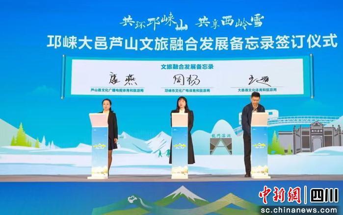 中新网四川新闻11月14日电 (刘刚)11月13日,“共环邛崃山、共享西岭雪”邛崃大邑芦山文旅融合招商推介会在成都举行。此次活动的成功举办,标志着邛崃市、大邑县、芦山县三地在共建巴蜀文旅走廊、推动区域文旅一体化发展上迈出实质性步伐,一幅“山水相连、人文互融”的文旅发展新图景正在邛崃山脉徐徐展开。