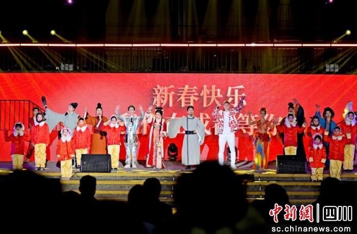 活动现场,来自成都杜甫草堂博物馆的福娃们以活泼可爱的形象走入公众视野,与成都台主持人陈岳一起带来诗朗诵《人日归来》,向市民游客送上了新年的第一声问候。