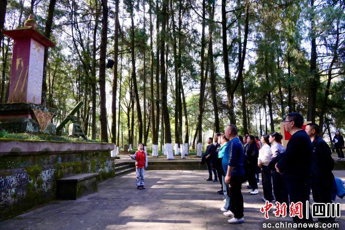 中新网四川新闻3月8日电 (胡鹏 周树江)“这位烈士牺牲时,只有十九岁……”3月5日,川陕革命根据地红军烈士陵园内,阳光穿过松柏洒在墓碑上。巴中市通江县李先念红军小学五年级学生黎卓依站在烈士墓碑前,声音带着稚嫩却字字清晰,身旁十多位游客静静聆听,有人悄悄摘帽,有人红了眼眶。