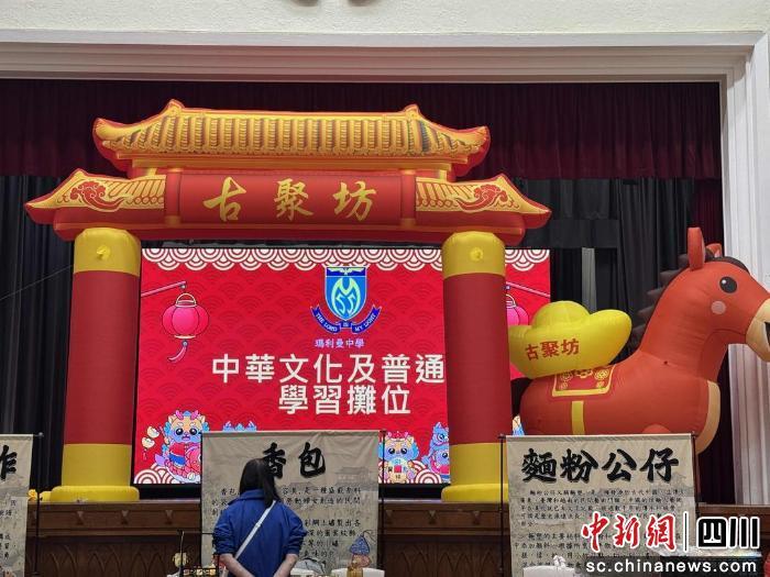 中新网四川3月20日电 近日,一场别开生面的“古聚坊”中华文化及普通话学习摊位活动在香港玛利曼中学热闹举行。香港四川合江同乡会在会长陈雪梅女士的带领下走进校园,将富有传统特色的非遗技艺带入课堂,与师生们共同体验中华文化的独特魅力。