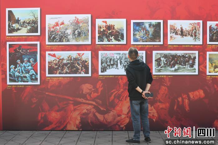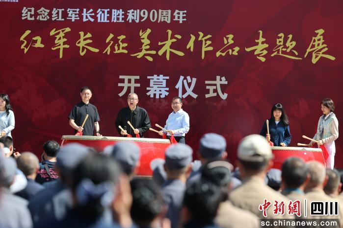 中新网四川新闻4月9日电 (记者 张浪)9日,纪念中国工农红军长征胜利90周年主题展览——“三军过后尽开颜——红军长征美术作品专题展”在四川省建川博物馆红色广场启幕。本次展览由四川省建川博物馆主办,以百余幅经典红色美术作品,艺术再现长征光辉历程,生动诠释伟大长征精神,赓续红色血脉、传承红色基因。