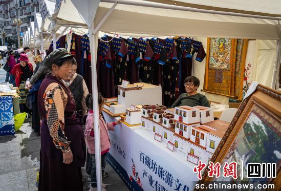 聚焦本土,乡城木雕、勉唐唐卡、“疯装”制作、檀香泥塑等非遗技艺集中展示。此外,还有得荣竹编、尼泊尔高山云雾茶,以及众多文创产品,吸引来往民众游客驻足。