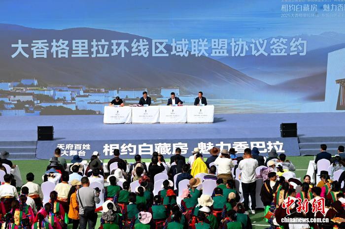 “2025大香格里拉环线·乡城白色灌礼文化周”在四川甘孜乡城县启幕,四川乡城县、稻城县、得荣县和云南丽江市,这四个地处大香格里拉环线的重要节点现场签署《大香格里拉旅游环线区域联盟战略合作框架协议》