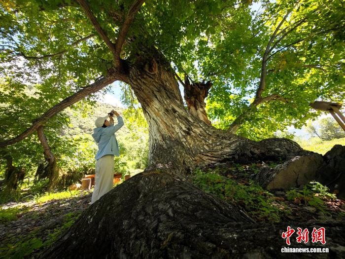 9月14日,在四川甘孜乡城县正斗乡白坝村,千年“胡桃王”挂满硕果。这棵国家一级保护古树高20米、胸围近10米,冠幅达23米。