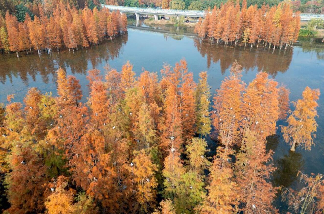 四川成都:成群鹭鸟栖息水杉林