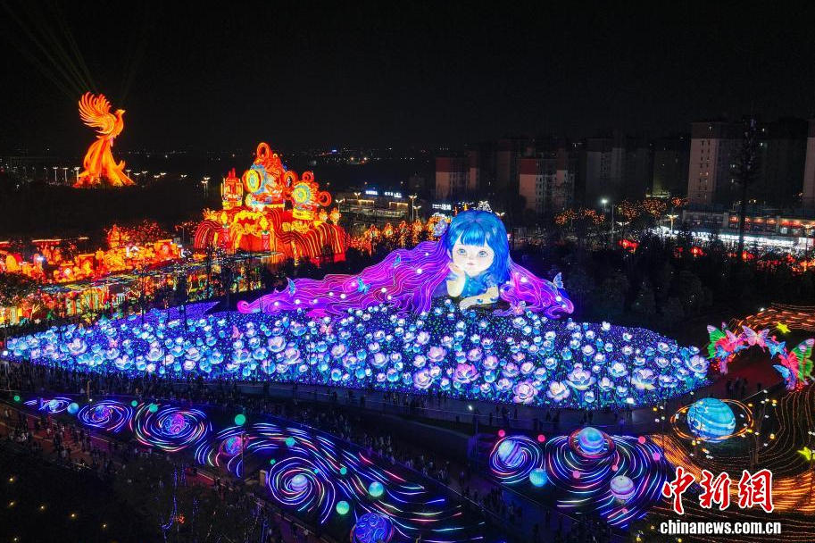 (新春见闻)航拍璀璨绽放的第32届自贡国际恐龙灯会