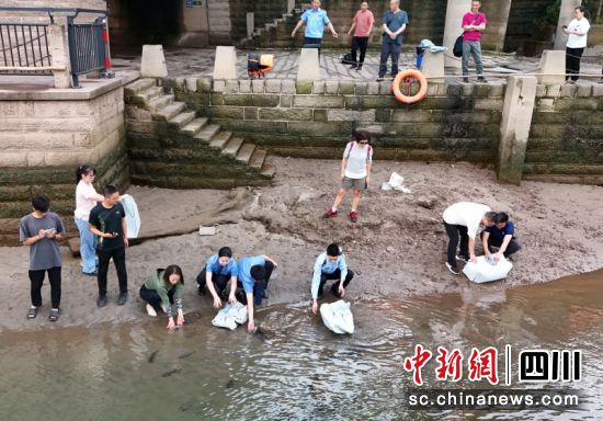 中新网四川新闻4月29日电 (吴平华 胡雪 杜茜)29日上午,宜宾市翠屏区合江门长江零公里处,因非法捕捞被处罚的孙某某等三人在相关部门及市民的见证下,将300尾长吻鮠放流长江。