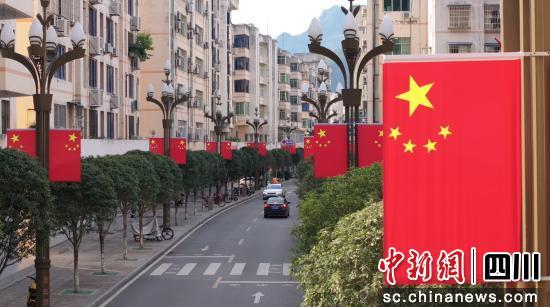 中新网四川新闻9月28日电 (曾媛)秋雨初歇,阳光穿透云层洒向大地,广元市朝天区处处涌动着炽热的节日气息。朝天城区主干道两侧的五星红旗,与缤纷绽放的时令花卉交相辉映,构成一幅喜庆热烈的节日画卷。随着国庆佳节临近,朝天区通过精细化施工与全民参与,勾勒出层次丰富、独具特色的节日景致,将对祖国的深情祝福融入城市的每一个角落。