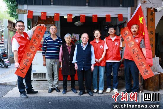 中新网四川新闻10月1日电 (杨雪艺 王雅竹)国庆前夕,眉山市丹棱县齐乐镇一家卷烟零售店的热闹景象引得路人“驻足”:悬挂彩旗、打扫店面、张贴对联、摆放鲜花……每到这个节日,“齐乐先锋队”志愿者总要上门“拜访”店主骆舒程——年近93岁的他是抗美援朝老兵。