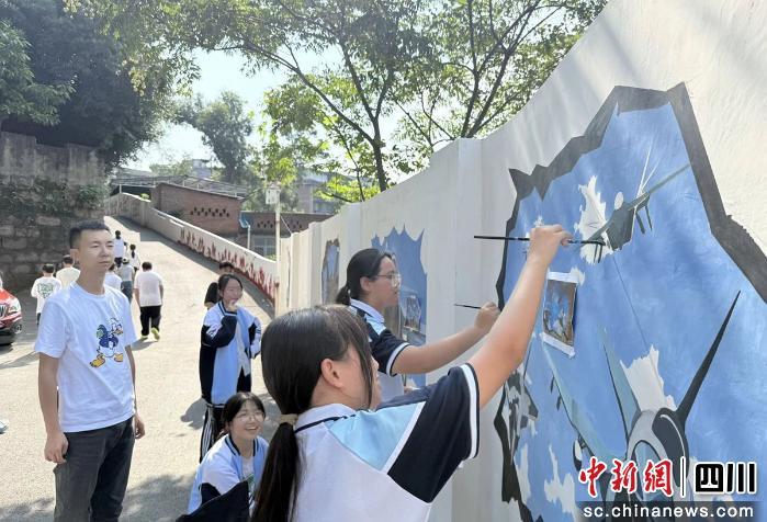据悉,学校开展本次墙绘活动,不仅让校园颜值“升级”,也让国防教育以艺术形式融入日常,更让国防教育“活”起来。比起书本讲解,同学们亲手画出战机的雄姿、航母的巍峨,更能让大家直观感受国防力量,在心中种下了“强国有我”的种子。(刘刚 李治/文 富顺教体 供图)